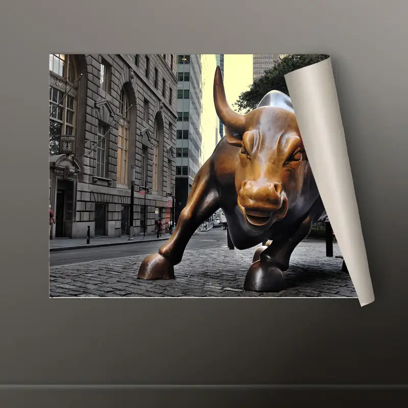 Elegant Bronze Bull Statue Canvas - New York Landscape Art
