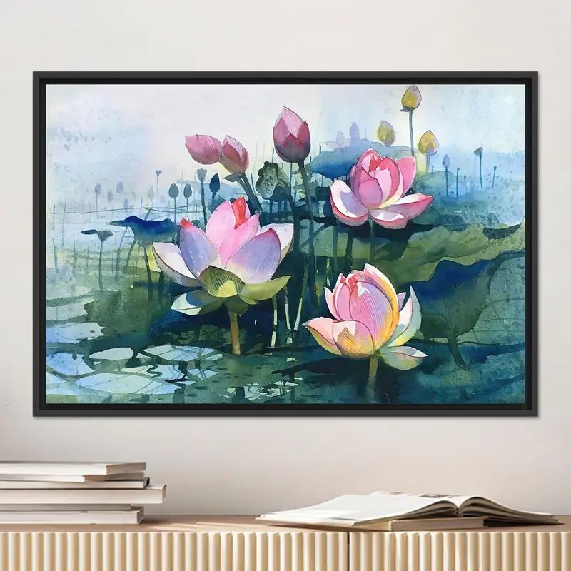 Modern Abstract Lotus Canvas: Pink Flower Watercolor Art Print