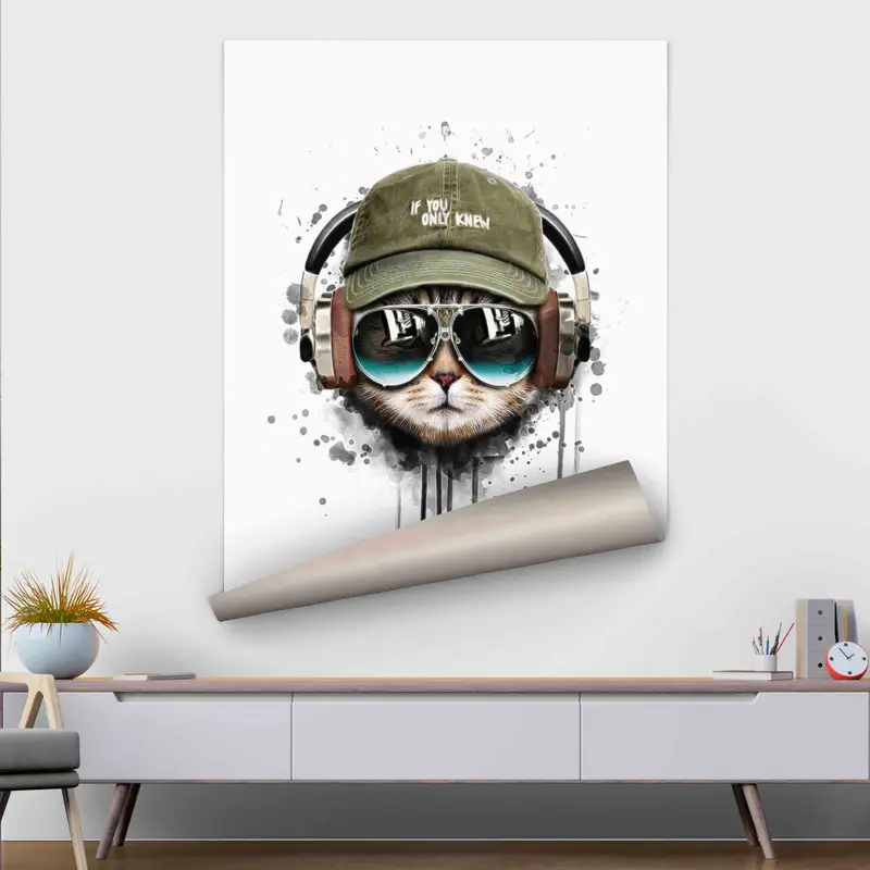 Modern Abstract Cat Canvas: Vibrant Feline Art Print