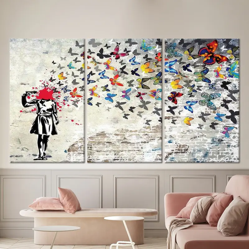 Enchanting Canvas: Banksy Girl & Butterfly Graffiti Art