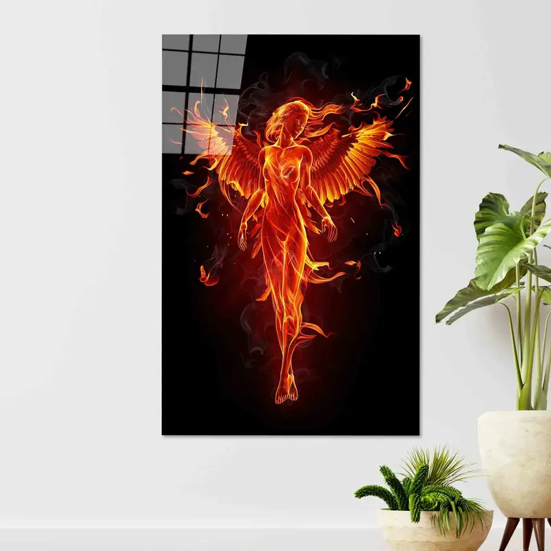 Fiery Woman Canvas: Abstract Fire Elemental Girl Art Print