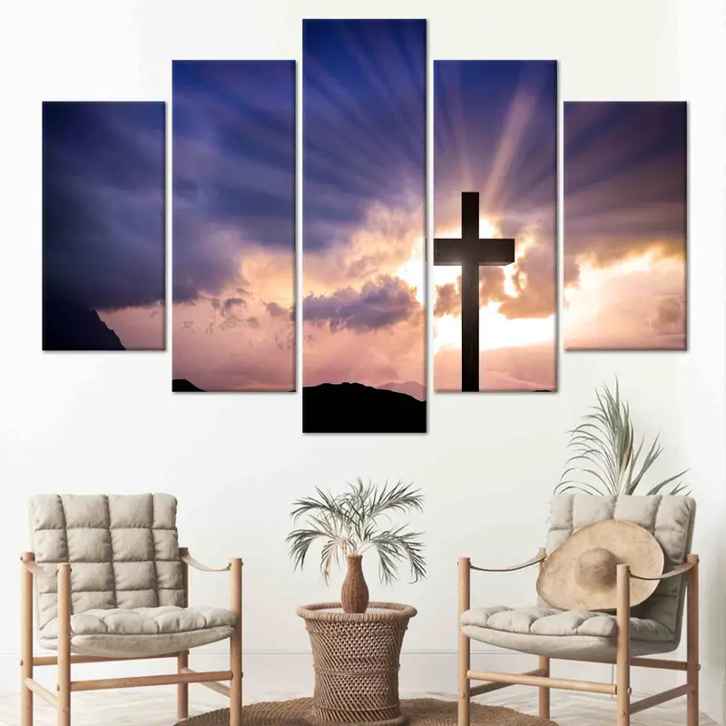 Sunset Jesus Christ Cross Canvas - Spiritual Serenity Art Print