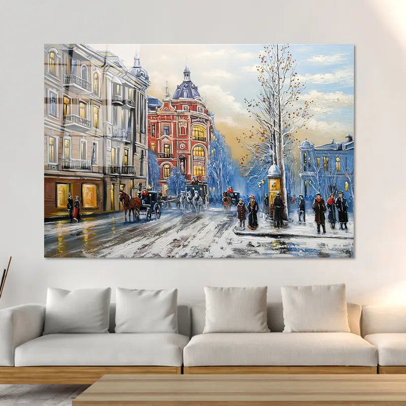 Modern Cityscape Canvas: Winter Landscape Art Print
