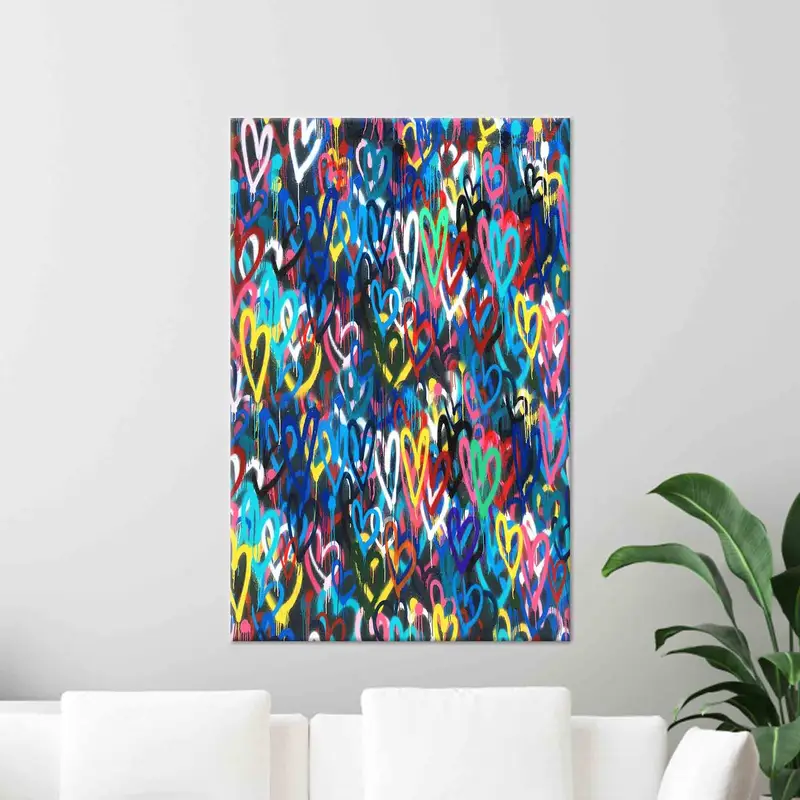 Vibrant Banksy Love Heart Canvas - Colorful, Multicolor Art Print