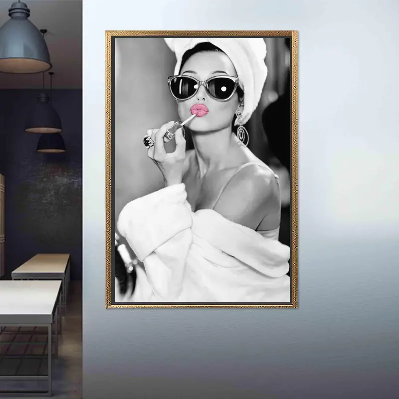 Audrey Hepburn Pink Lips Canvas: Iconic Fashion Art Print