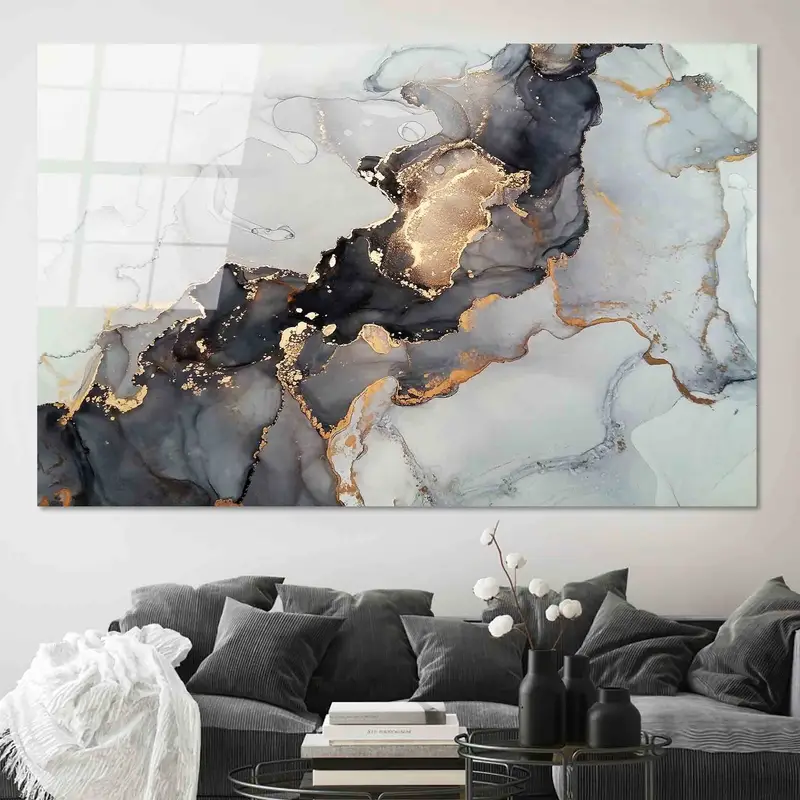 Elegant Black and Gold Printed Canvas - Luxury Abstract Marble