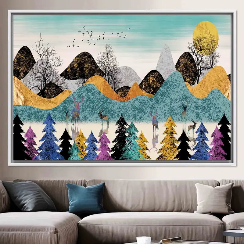 Elegant Deer Forest Scenery Printed Canvas - Contemporary Abstract