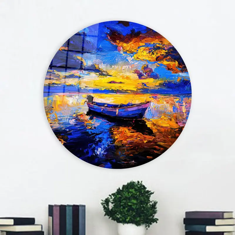 Elegant Sea Landscape Canvas: Abstract Boat Painting in Blue
