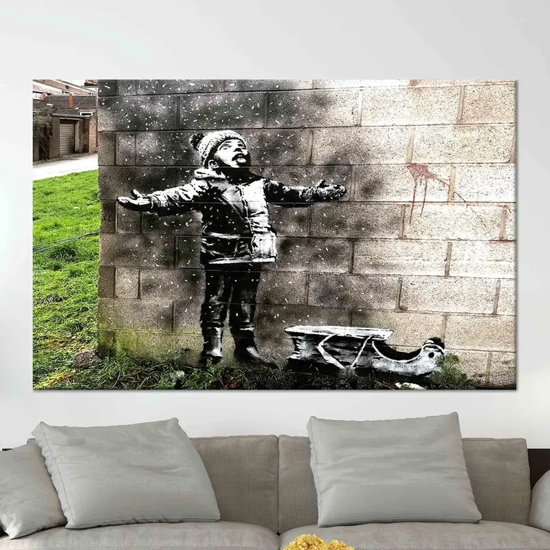 Bansky Boy Canvas Print: Urban Art, Modern Elegance, Home Decor
