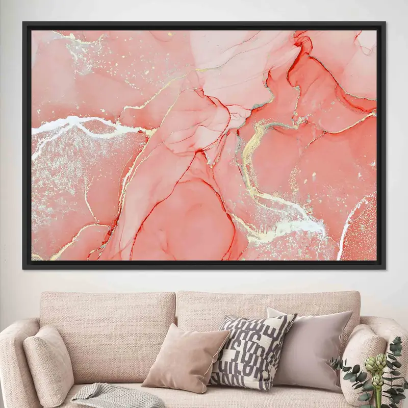 Elegant Coral Marble Gold Shimmery Luxury Canvas Print