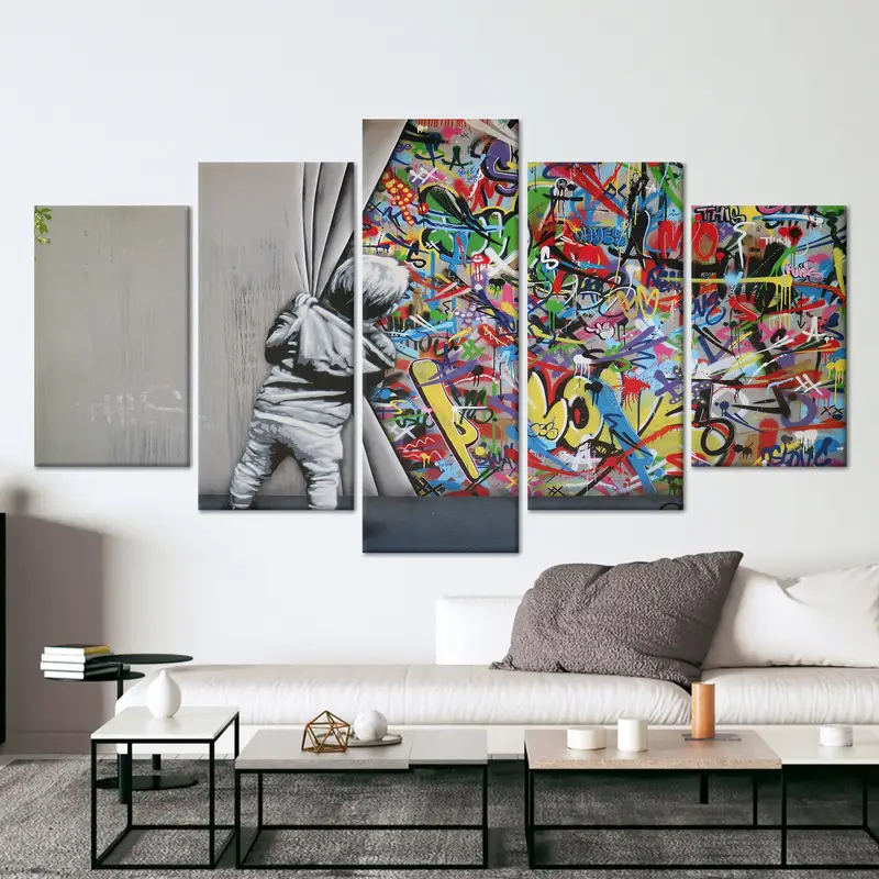 Vibrant Banksy Boy Graffiti Canvas Print - Modern Art Decor