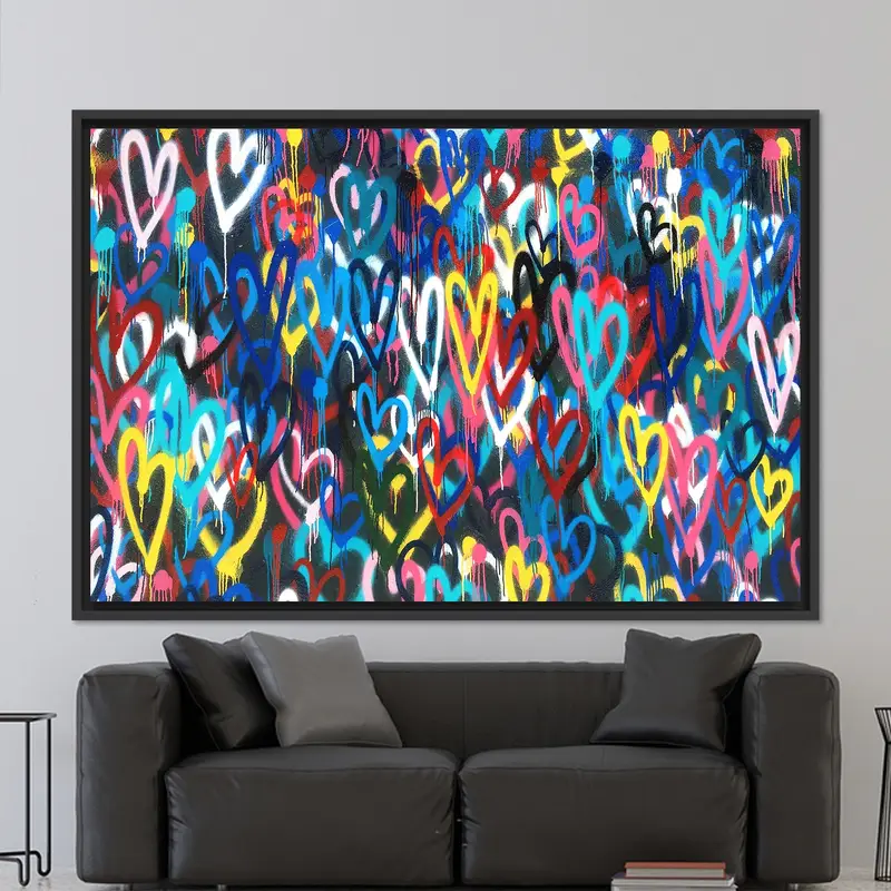 Vibrant Banksy Hearts Canvas: Colorful Love Art Print