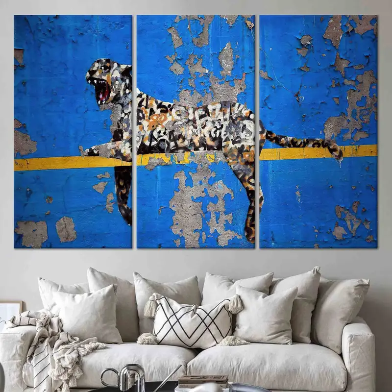 Elegant Bronx Zoo Leopard Graffiti Blue Printed Canvas
