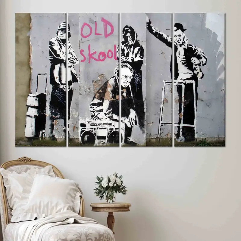 Abstract Graffiti Canvas: Banksy Old Skool Printed Art