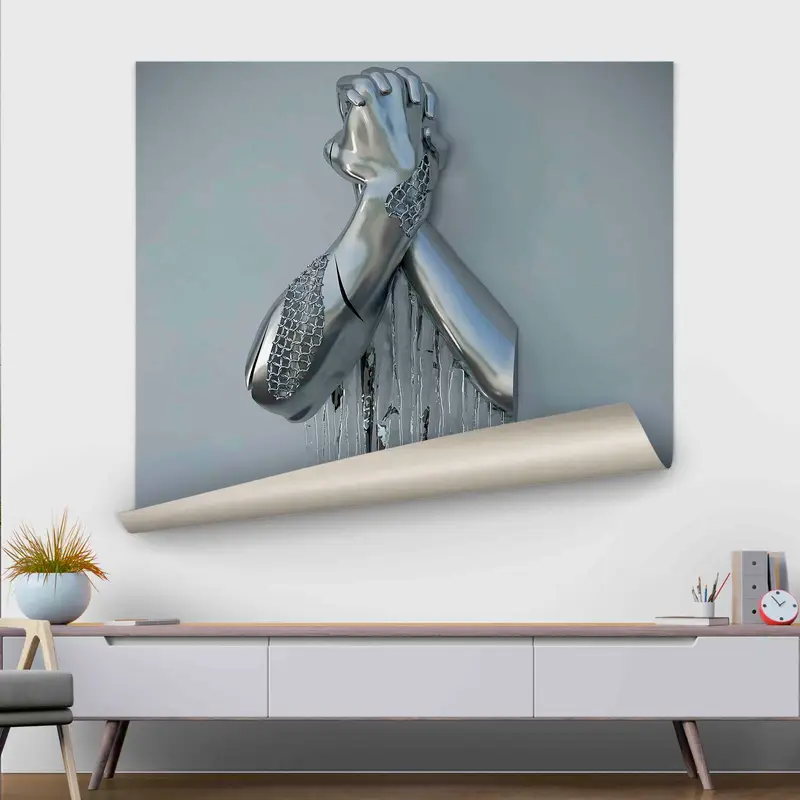Contemporary Metallic Hand Printed Canvas with Trendy 3D Effect