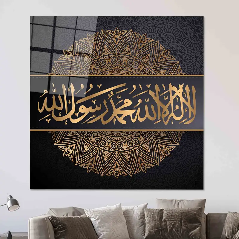Luxury Black & Gold Printed Canvas: Allah Muhammad Art