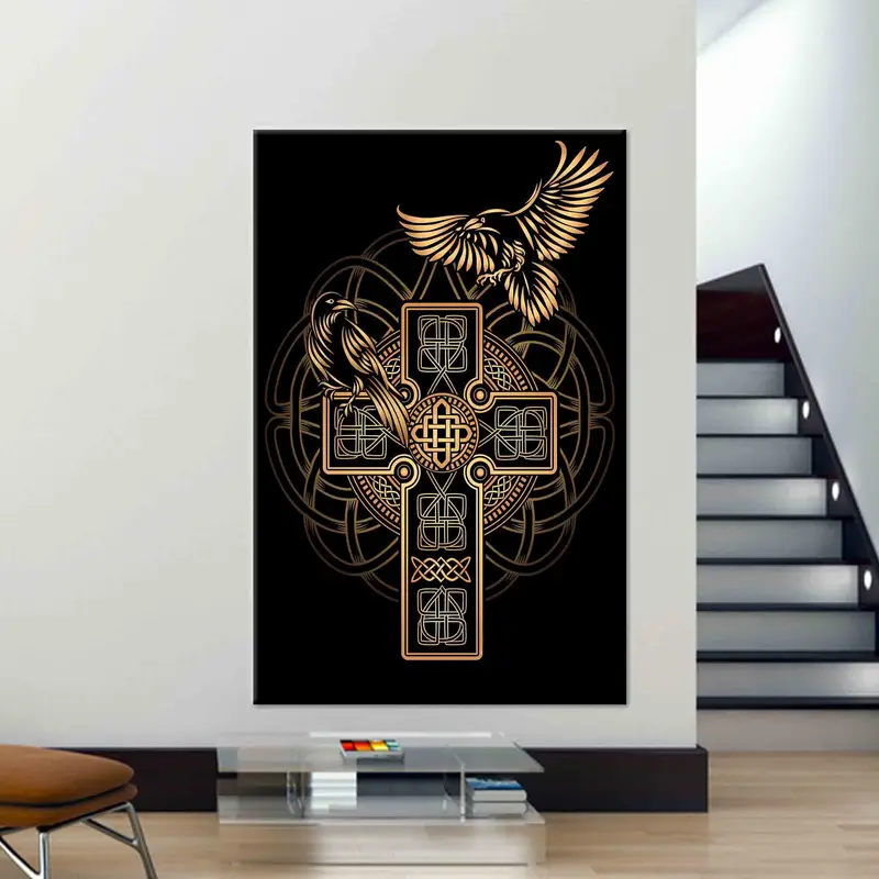 Odin's Ravens Cross Canvas: Mystical Art Print for Home
