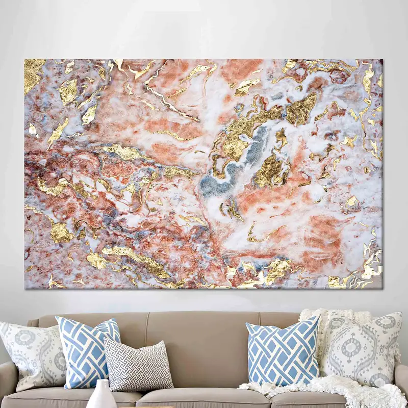 Luxury Marble Shimmery Printed Canvas: Gold Marble Elegance