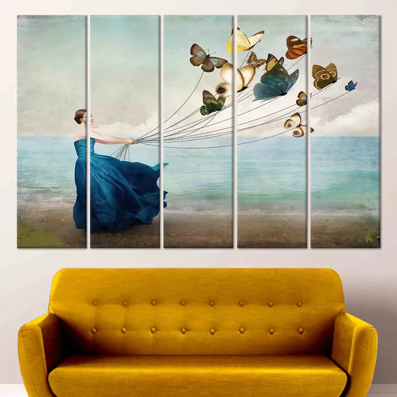 Elegant Butterfly Woman Canvas: Abstract Art for Butterfly Lovers