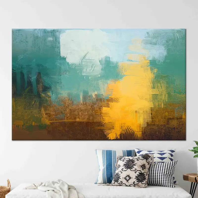 Modern Abstract Canvas: Colorful, Green & Yellow Oil Print