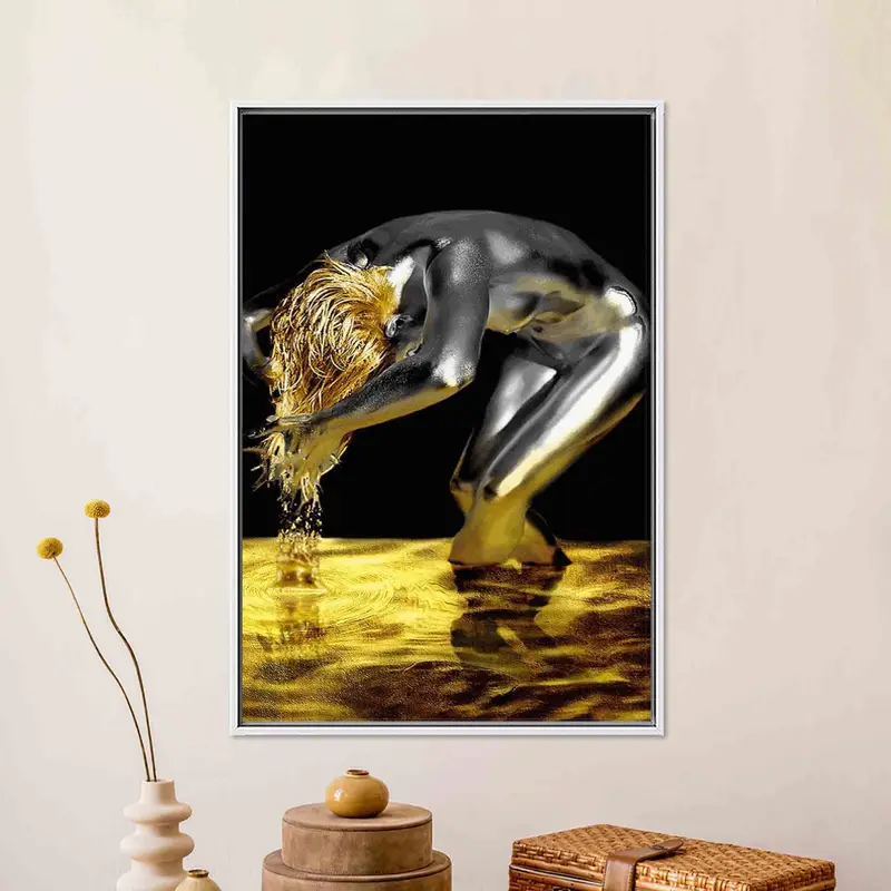 Modern Metallic Woman Canvas: Elegant Contemporary Art Print