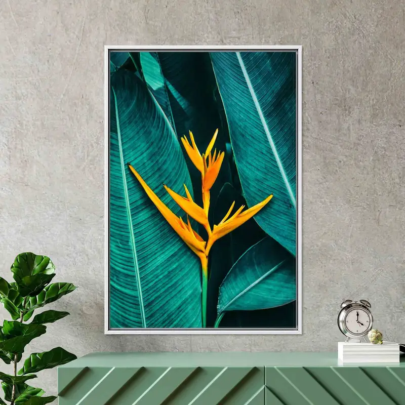 Tropical Green Leaves: Printed Canvas in Vibrant Yellow Hues