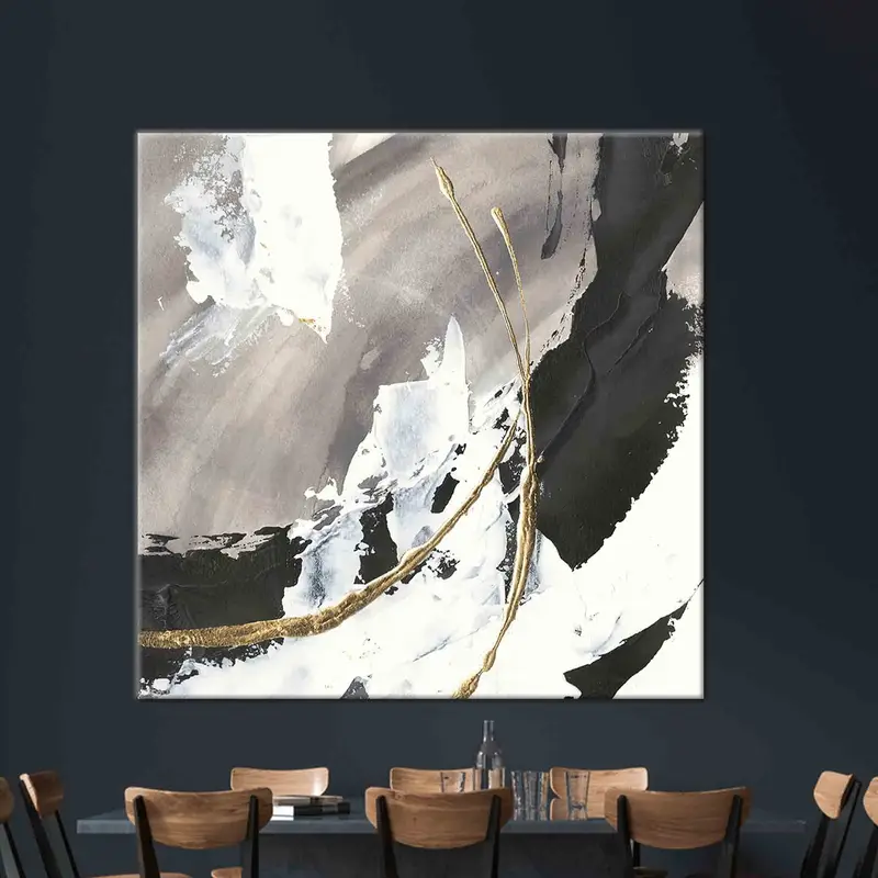 Contemporary Gold & Black Shimmery Printed Canvas Art