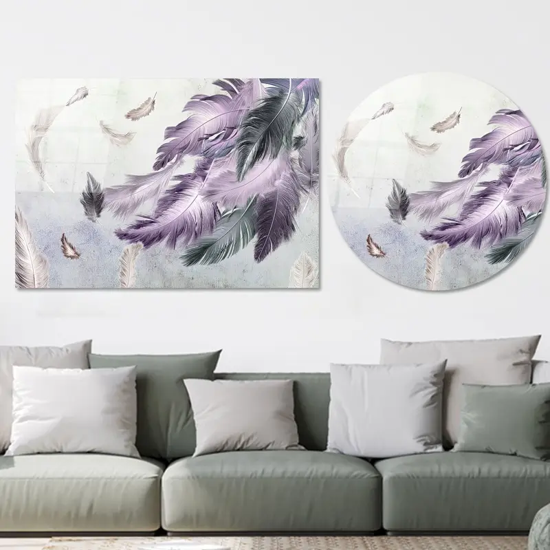 Feather Purple Contemporary Canvas: Elegant Soft Tones Print