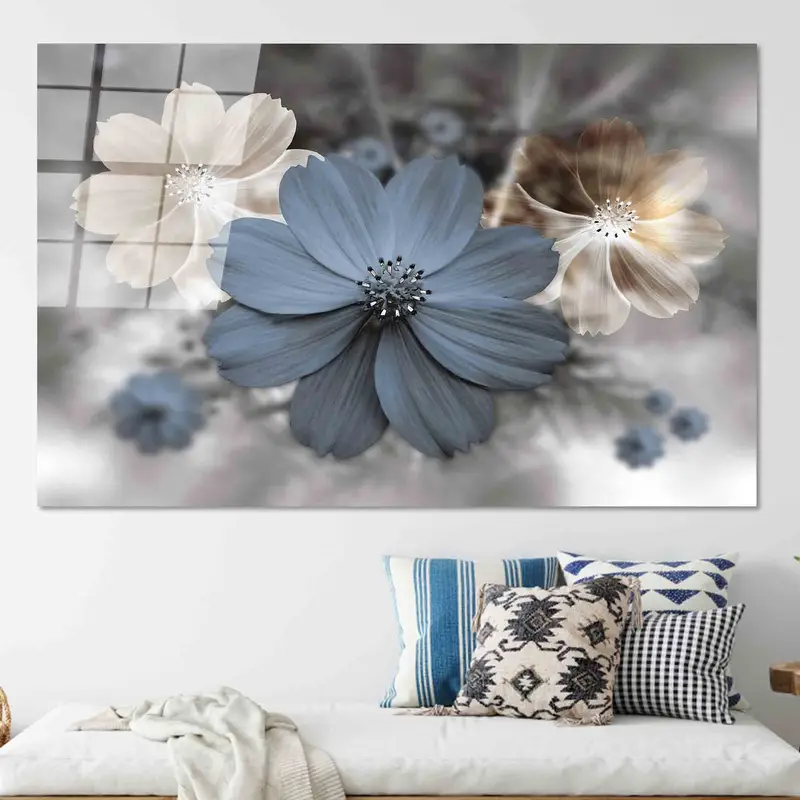 Modern Luxury Canvas: Trendy Blue Flowers Printed Art