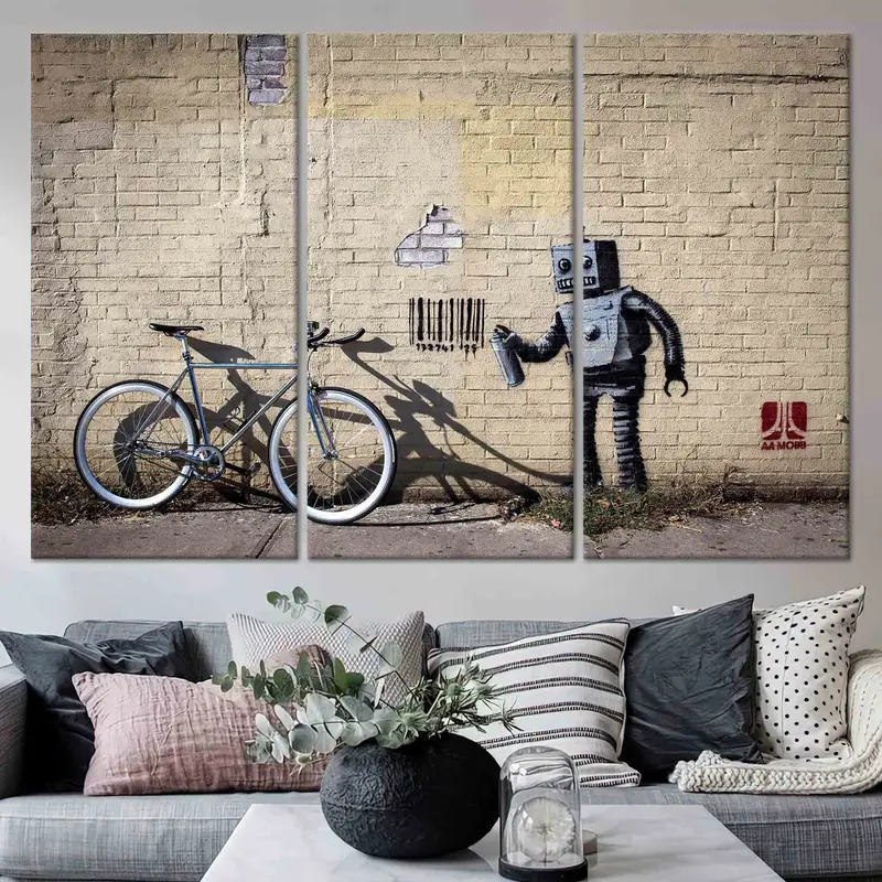 Artistic Banksy Robot Canvas: Modern Graffiti Decor