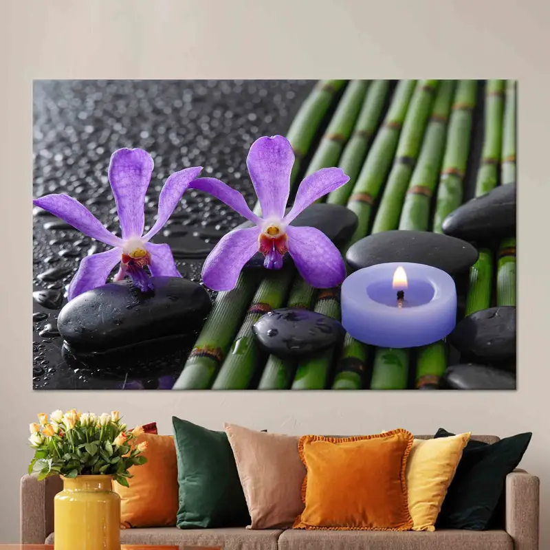 Elegant Printed Canvas: Purple Orchid, Bamboo Grove, Zen Candle