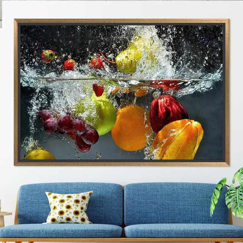 Trendy Colorful Fruits Splash Kitchen Canvas Print