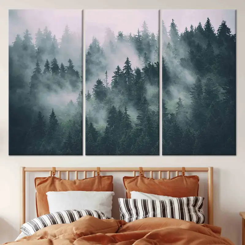 Enchanted Misty Mountain Forest Landscape Printed Canvas Art