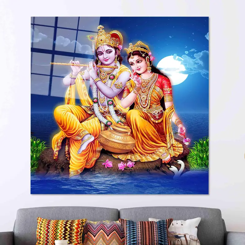 Sacred Radha Krishna Canvas: Hindu Couple Art Print