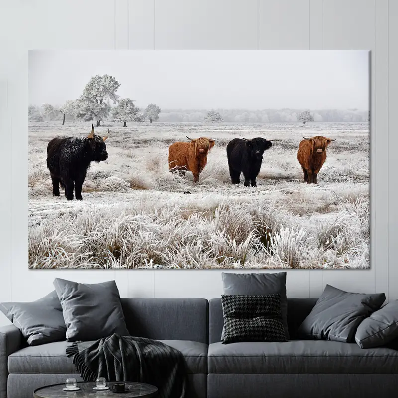 Elegant Cow Canvas: Farmhouse Nature Landscape Art Print