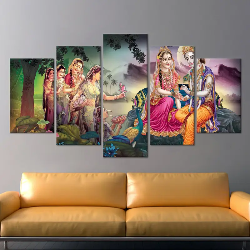 Sacred Radha Krishna Canvas: India's Traditional Art on Printed Canvas