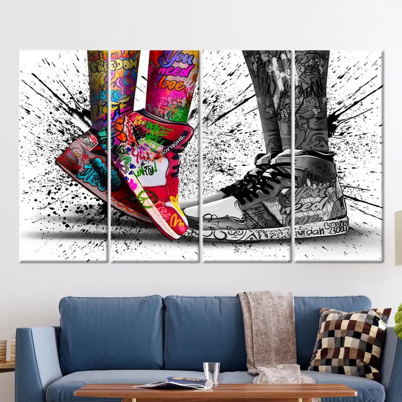 Elegant Graffiti Air Jordans Canvas Print - Artistic Home Decor