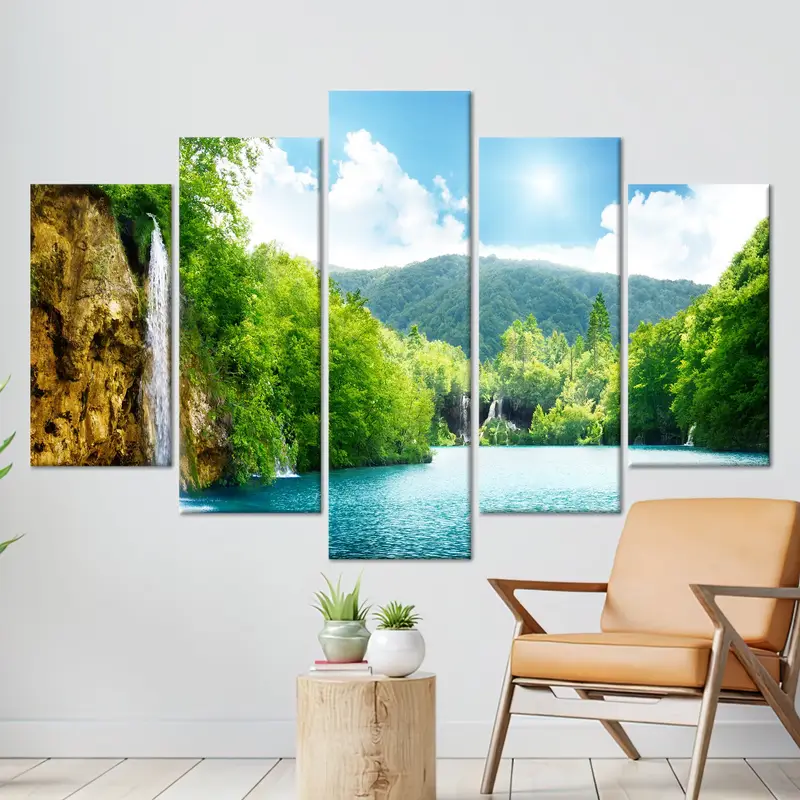 Elegant Waterfall Forest View Printed Canvas - Nature's Serenity