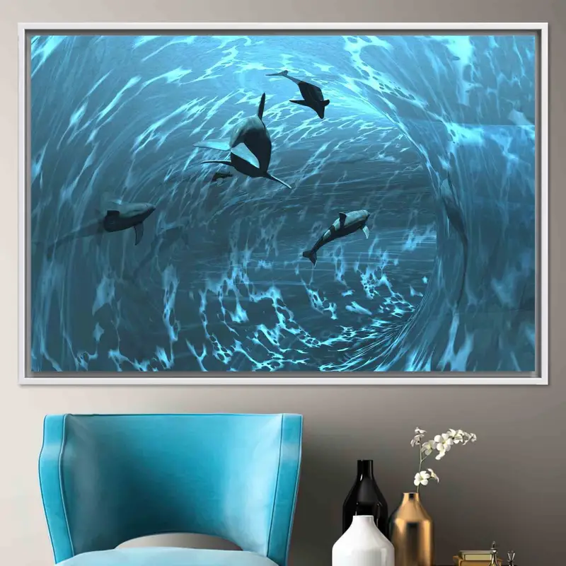 Elegant Underwater Seascape Canvas: Vibrant Blue Fishes Print