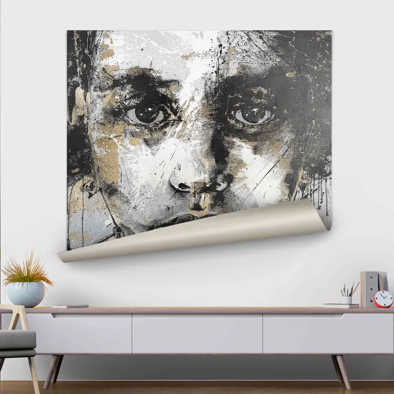 Golden Abstract Portrait Canvas: Elegant Man Face Art Print