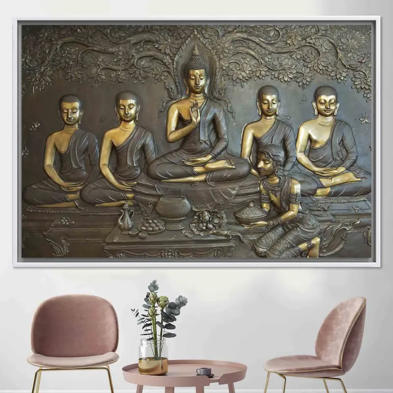 Elegant Buddhist Meditation Canvas: Gold Asian Sculpture Print