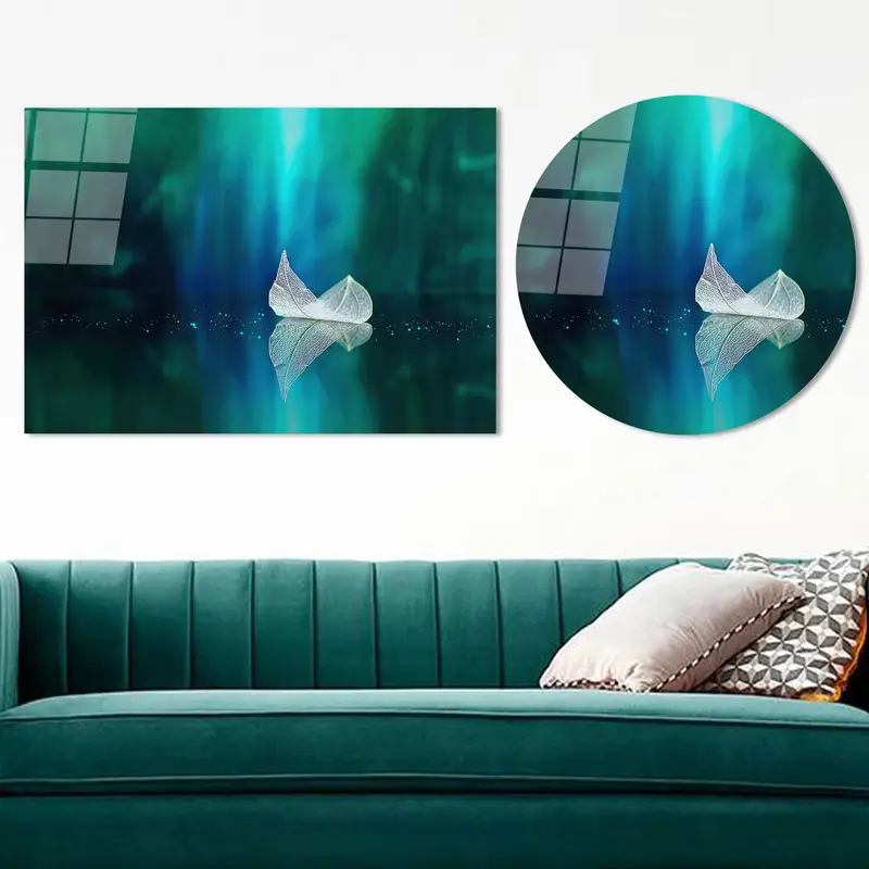 Nature Landscape Printed Canvas: Elegant Leaf & Lake View