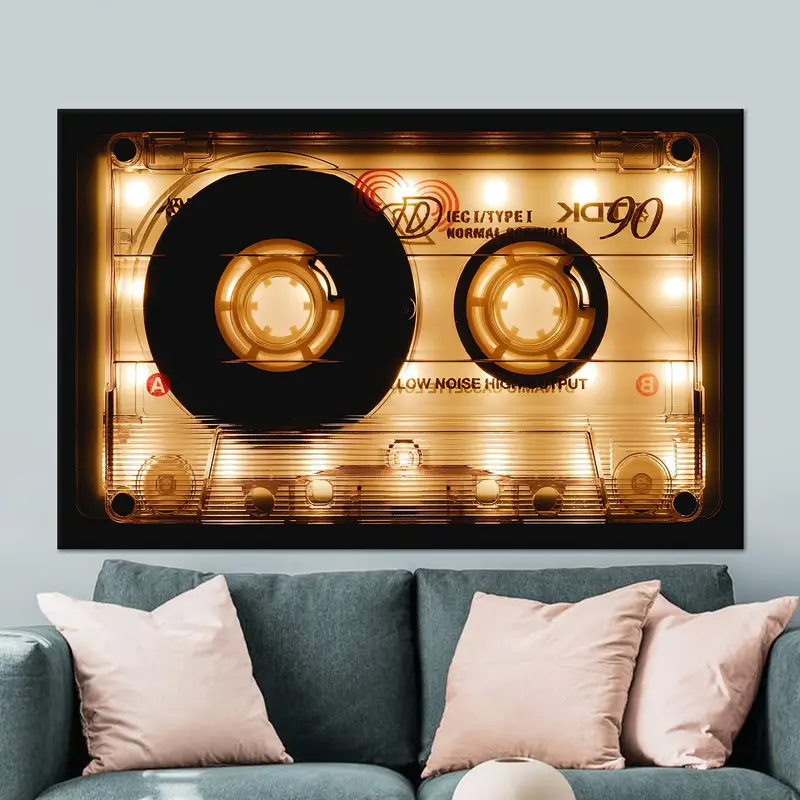Vintage Music Canvas: Retro Cassette Art Print for Home
