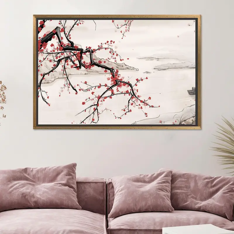Minimal Japanese Landscape Tree Floral Canvas Print - Elegant Decor
