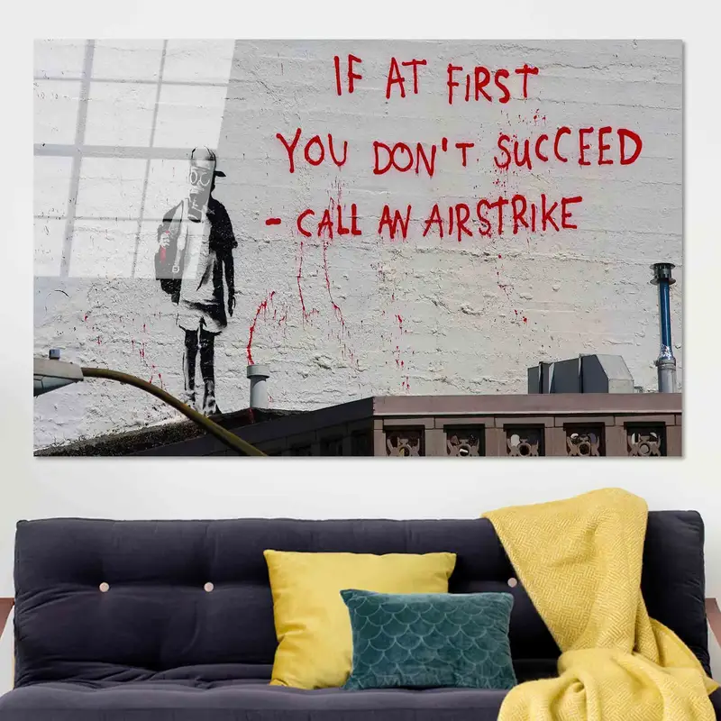 Modern Banksy Graffiti Canvas: Airstrike Art Print on Stretched Panel