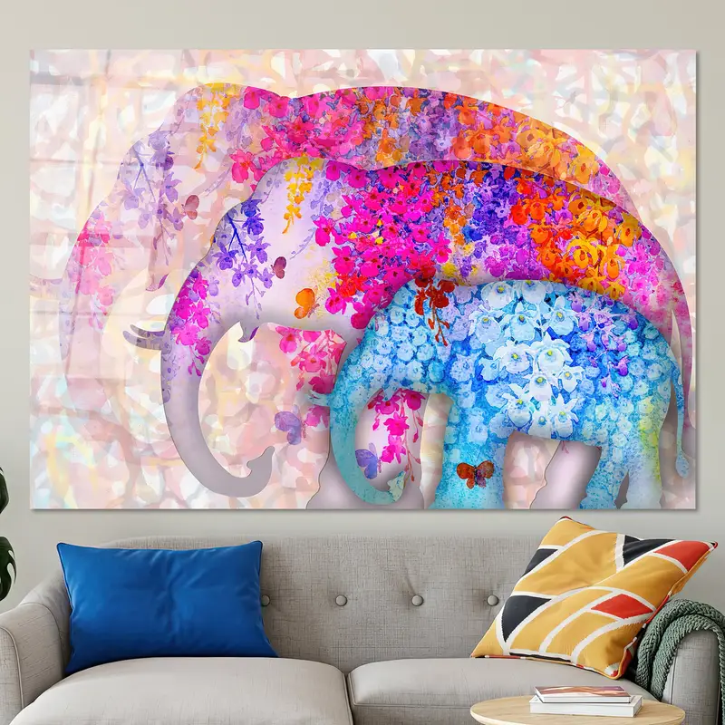 Modern Floral Elephant Canvas Print - Vibrant, Artistic Decor
