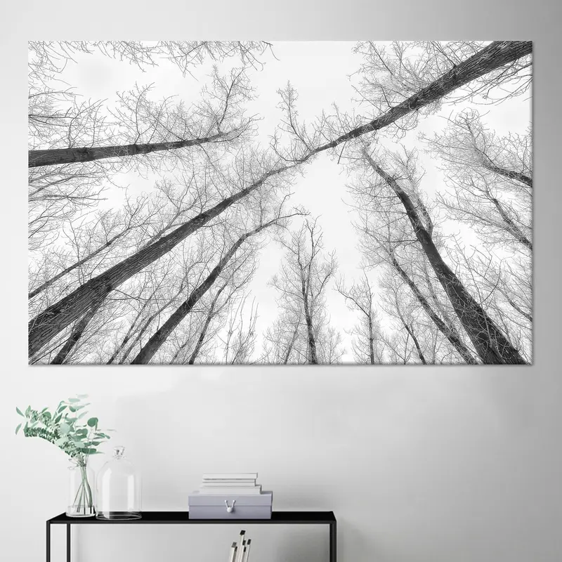 Modern Black & White Tree Landscape Printed Canvas for Office