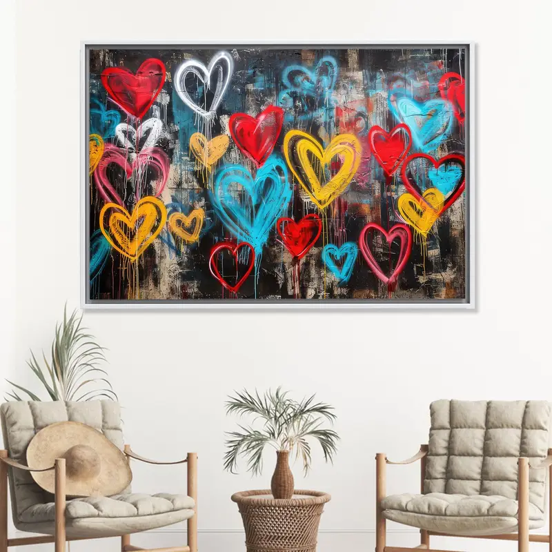 Vibrant Graffiti Hearts Canvas Print - Colorful Wall Art