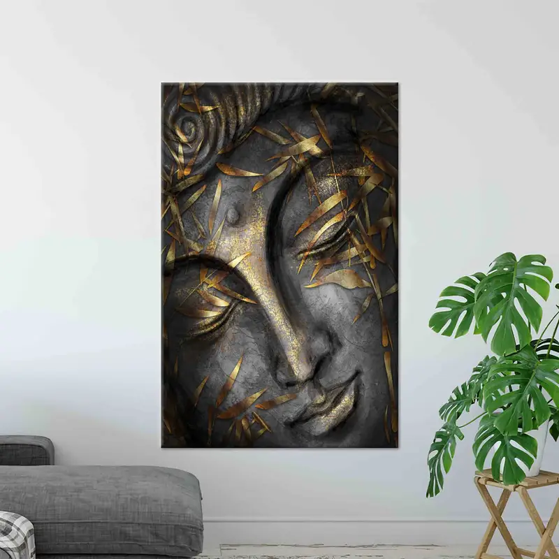 Elegant Buddha Meditation Canvas: Contemporary Gray and Gold
