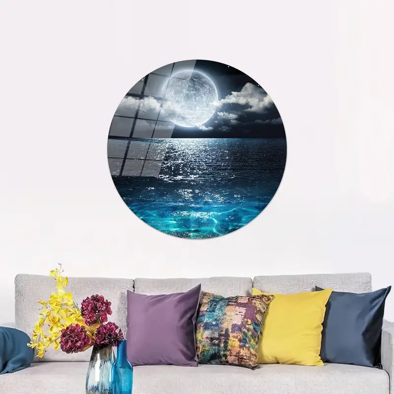 Modern Moon View Canvas: Trendy Sea And Moon Landscape Print